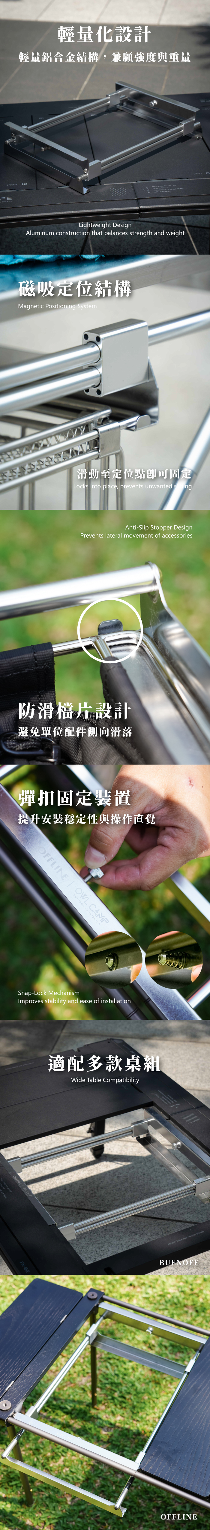 本體採一單位規格設計,可搭配既有瀝水籃、置物籃等配件使用,