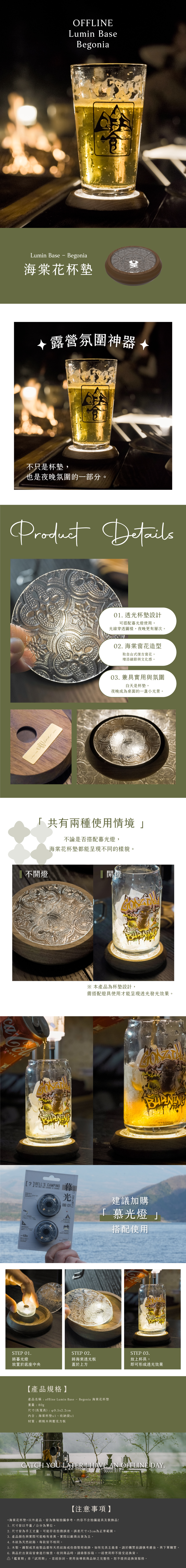 ※ 本產品為杯墊設計,需搭配暮光燈使用才能呈現透光發光效果。