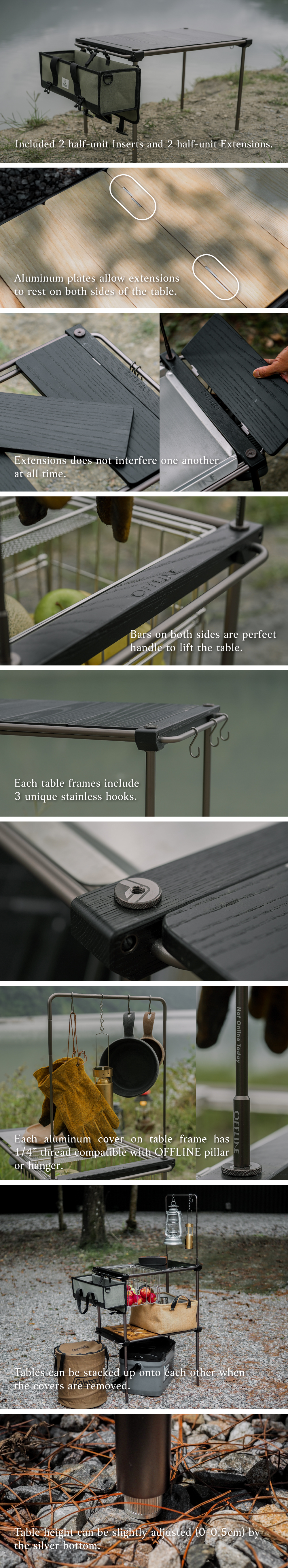 OFFLINE table is ideal not only for outdoor but also indoor uses. It can stack up onto or link to each other for multiple functions. With various IGT accessories, you can freely create your own user style. Fast and simple setup provides an incredible experience. Finally, the materials and details of the product express clearly the brand’s industrial aesthetic.