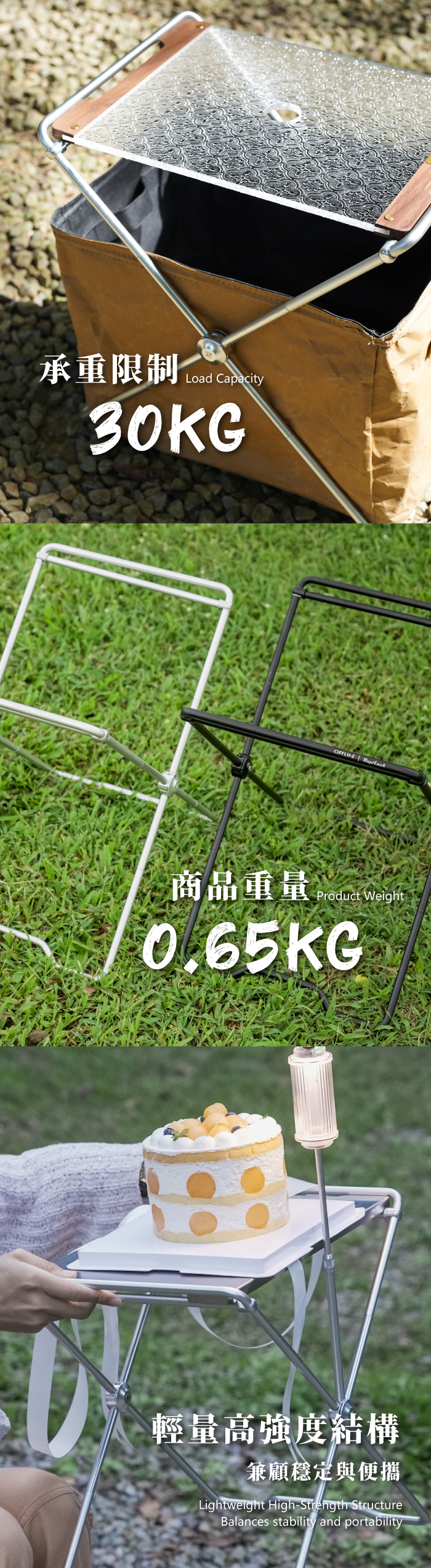 ▸ 輕量高強度結構|僅 0.65 kg,卻可承重 20 kg